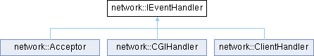 Implemented in network::Acceptor, network::CGIHandler, and network::ClientHandler.